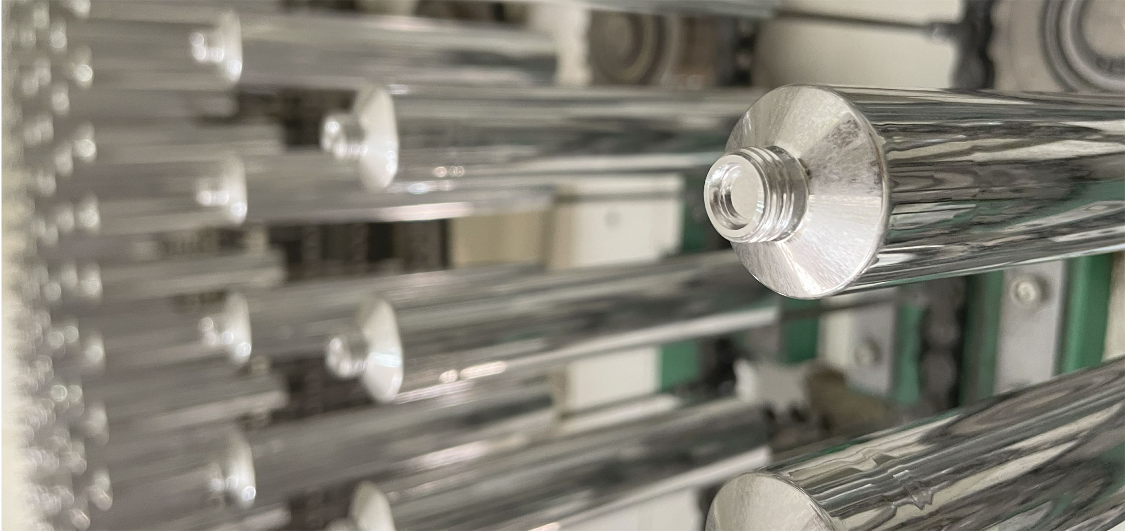 Después de la extrusión, los tubos se cortan a la longitud deseada, correspondiente al tamaño final del producto y se realiza el roscado de la boca del tubo para permitir colocarle una tapa.